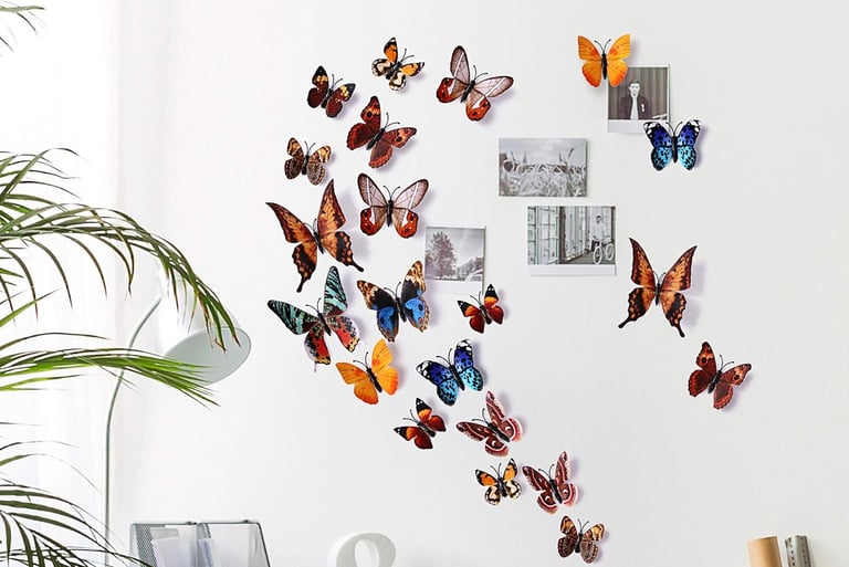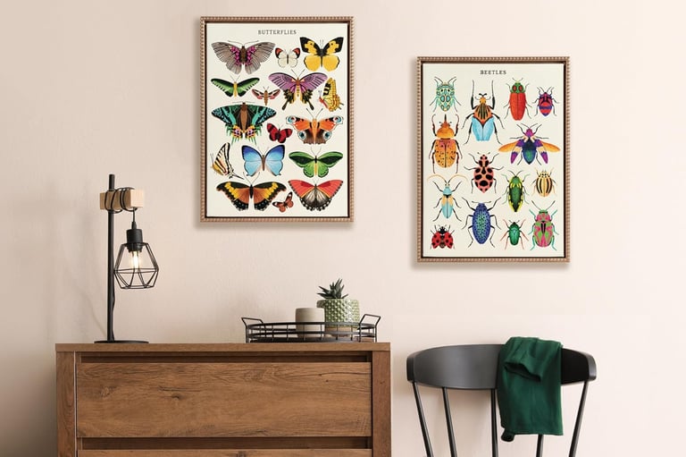 A gallery wall filled with butterfly prints or illustrations adds an instant pop of color and charm. Look for vintage-style butterfly art prints or botanical wall posters to create a dreamy focal point above your bed or sofa.