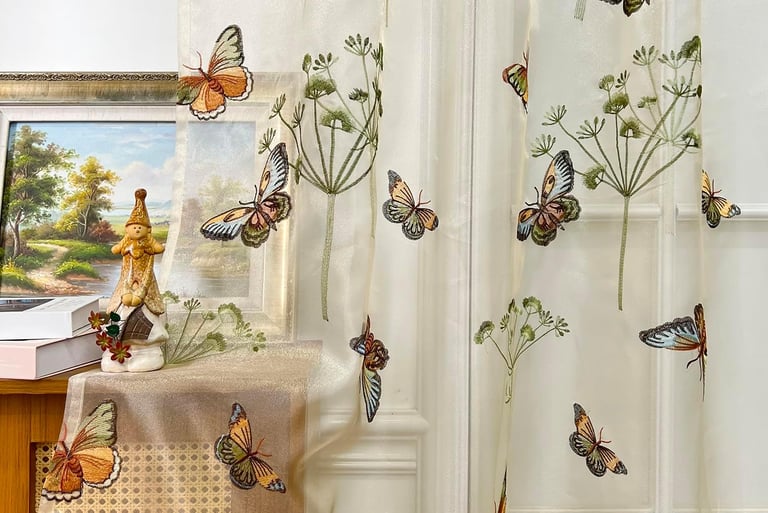 Light, airy curtains printed with soft butterfly motifs can make your space feel like an indoor garden. Choose neutral backgrounds for a subtle look or bold hues to make a statement.