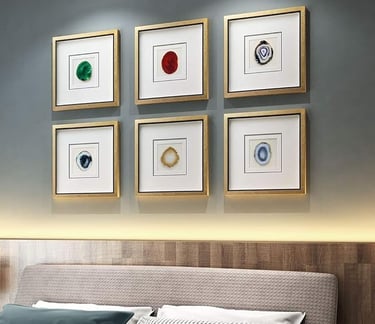 Geode wall art is having a major moment. From resin art pieces that mimic crystalline patterns to framed slices of real agate, this trend brings texture and depth to your walls. Hang a large geode-inspired artwork above your bed or sofa to create a statement piece that feels both modern and timeless.