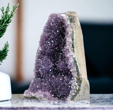 Sometimes, less is more. Small geodes or crystal clusters make perfect shelf accents. Tuck one between books, plants, or picture frames to add a hint of sparkle and balance. They work beautifully in minimalist or boho spaces, offering texture without overwhelming the design.