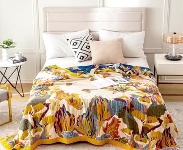 Forget minimalism — boho style thrives on color and pattern! Mix jewel tones with earthy hues, and blend global-inspired prints like ikat, suzani, or Moroccan motifs. If you prefer a softer take, opt for muted terracottas, blush pinks, and dusty greens for a modern boho palette.